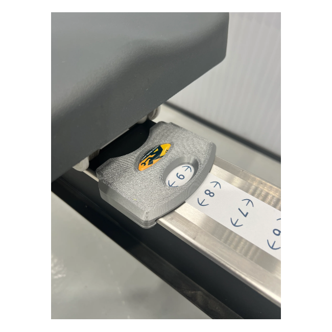 This device clamps to the seat rail to prevent that happening (it is supplied with a numbered strip so that its position can be set accurately to suit different users).